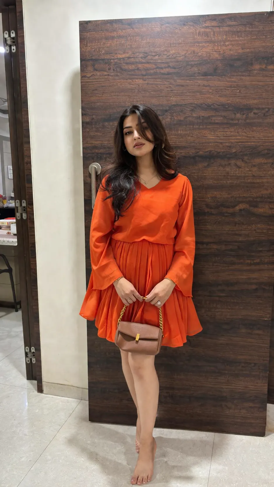 The dress looked lovely with a perfect tone of orange. It gave great contrast in the island background. Also, kudos to the team for arranging the dress on such short notice, being always available via mail, delivering the dress before time and modifying it as per the requirement (I got the length shortened). Overall, a perfect dress for beach kindoff vacation.
