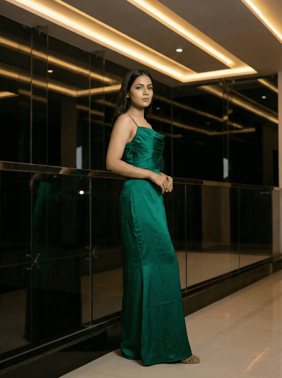 • Styling Note: Style with metallic heels, statement earrings, and a sleek hairstyle for a refined, luxe evening look.