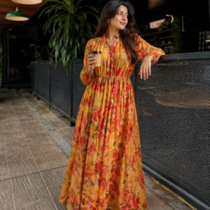• Length: Full-length maxi dress that elongates the silhouette beautifully.