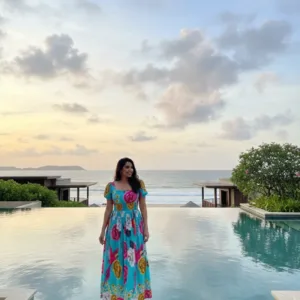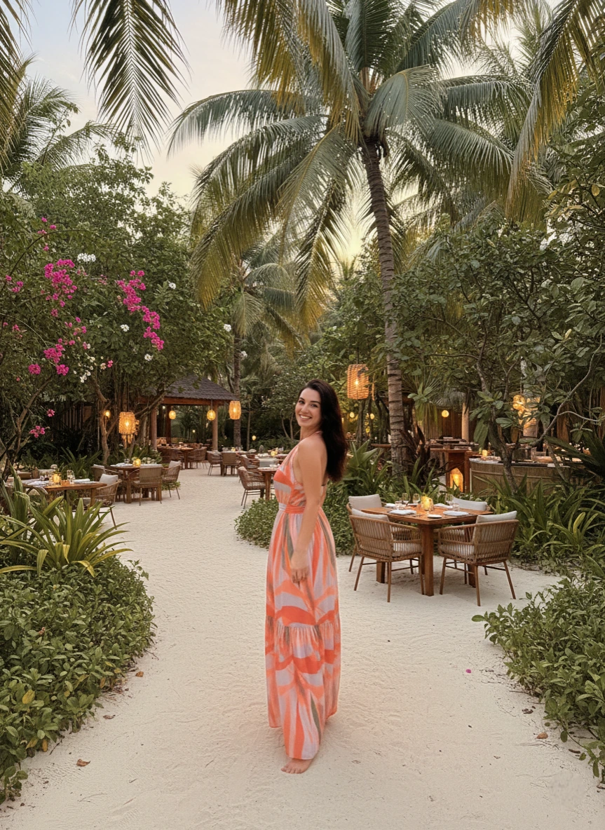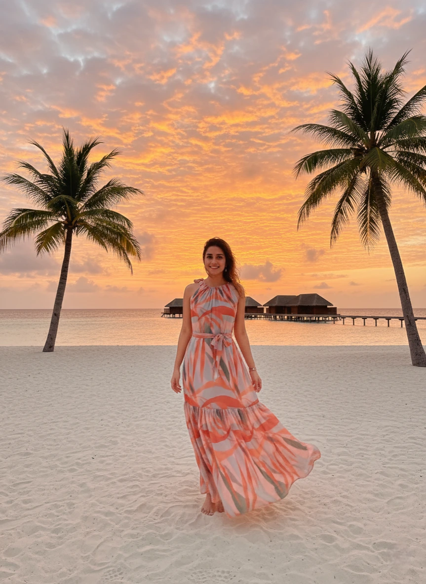 Styling Notes: Sandals or barefoot, delicate jewelry, optional shawl or lightweight jacket