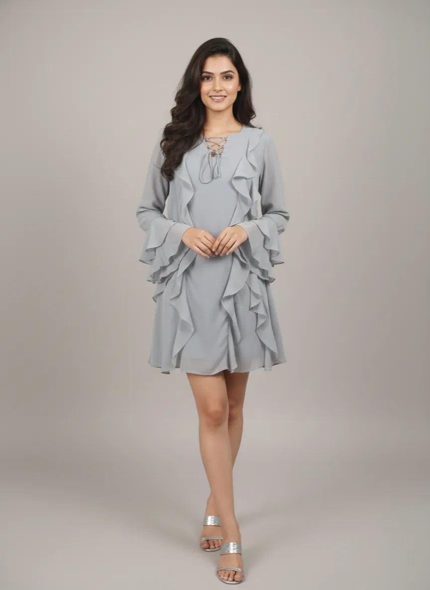 Grey Grace Layered Ruffle Dress