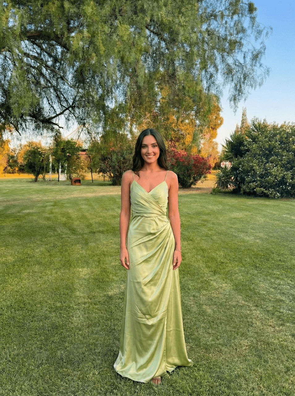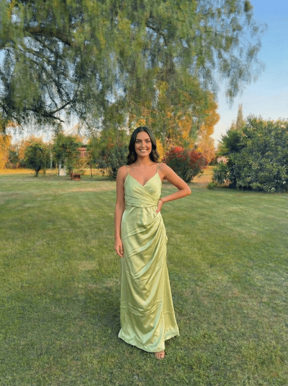 • Neckline & Straps: V-neck wrap-style neckline with delicate spaghetti straps for a feminine look.