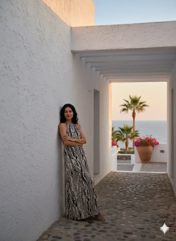 • Styling notes: Pair with nude sandals or espadrilles, statement earrings, and a simple clutch; natural makeup for a relaxed, chic vibe.