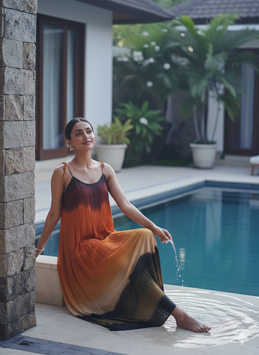 - Styling note: Natural makeup, hair pulled back for a polished, resort-chic look; minimal accessories to keep focus on the dress