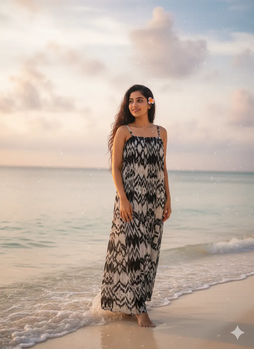Be the first to review “Pleated Ikat Print Maxi Dress for Beach Vacations”